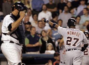 1. Two top teams, two close games: The Yankees and Tigers, the AL’s top two teams, played a doubleheader yesterday after being rained out Tuesday. The results, not surprisingly, were two interesting games. The Yanks took Game 1 by a count of 2-0 behind the fantastic play of Chien-Ming Wang. Wang pitched seven-plus innings, allowing no runs and getting his 16th win of the year. That ties him with Roy Halladay for the highest win total in the majors. In Game 2, the tides turned and the Tigers won 5-3. Craig Monroe hit a three-run homer in the 9th off of Scott Proctor to win the game. The teams will play a game tonight that will decide the series. Jeremy Bonderman of the Tigers and Randy Johnson of the Yankees will take the mound.