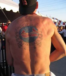 We don’t have a photo of his wretched tattoo but it sounds like a job for Joe Sports Fan.
